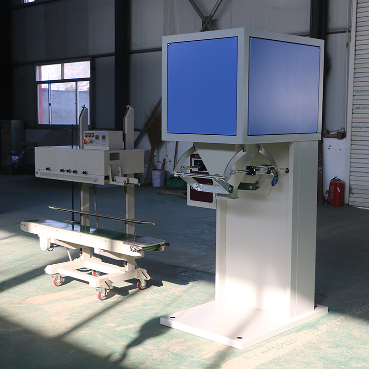顆粒包裝機(jī)主要由物料進(jìn)口、給料機(jī)構(gòu)(閘門)、稱量斗、夾袋機(jī)構(gòu)、機(jī)架、吸風(fēng)口、氣動系統(tǒng)、傳感器、控制箱、輸送和縫包機(jī)構(gòu)等組成。
