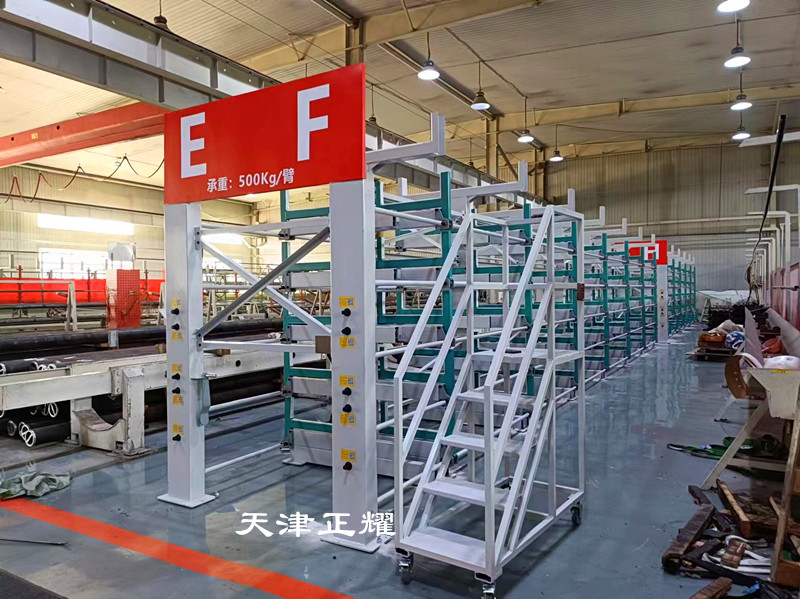 伸縮式懸臂貨架的亮點(diǎn)在于其靈活的伸縮功能。每層懸臂都可以通過手動(dòng)或電動(dòng)裝置搖出,使得材料在不移動(dòng)貨架整體的情況下即可直接暴露于操作區(qū)域,節(jié)省了存取時(shí)間。單人單手即可輕松搖出重達(dá)6噸的材料,這一設(shè)計(jì)充分考慮了操作人員的體力和效率需求。搖出后,吊車可直接從貨架上方吊裝材料至使用地點(diǎn),整個(gè)過程流暢快捷,無需額外搬運(yùn),大大減少了人力成本和時(shí)間消耗。