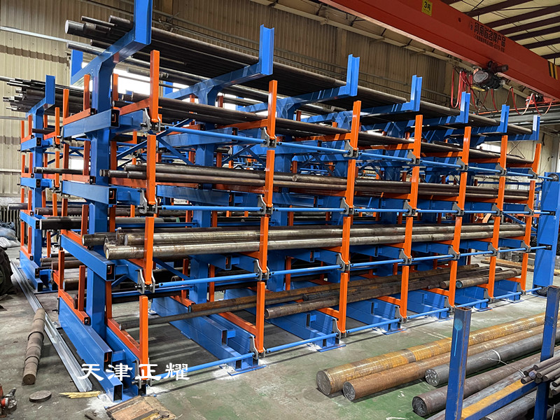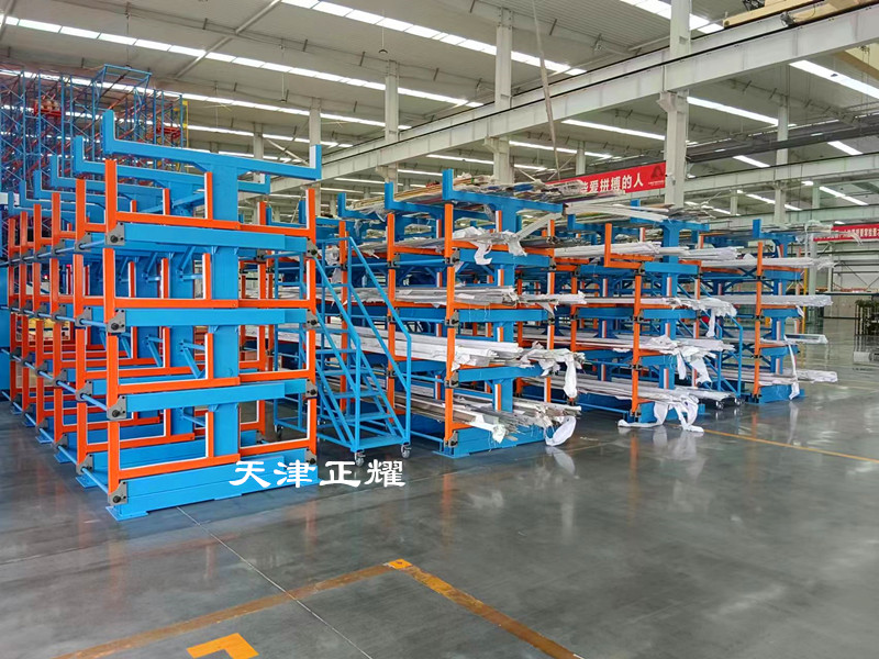 浙江寧波伸縮懸臂貨架立體存放幾十種材料整齊省空間