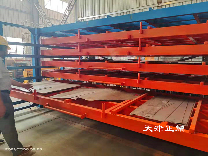 抽屜式板材貨架上架存放比地面堆放省空間擺放種類多整齊數(shù)量清晰方便存取使用,吊車吸盤存取單人操作使用省時(shí)省力省空間省成本。